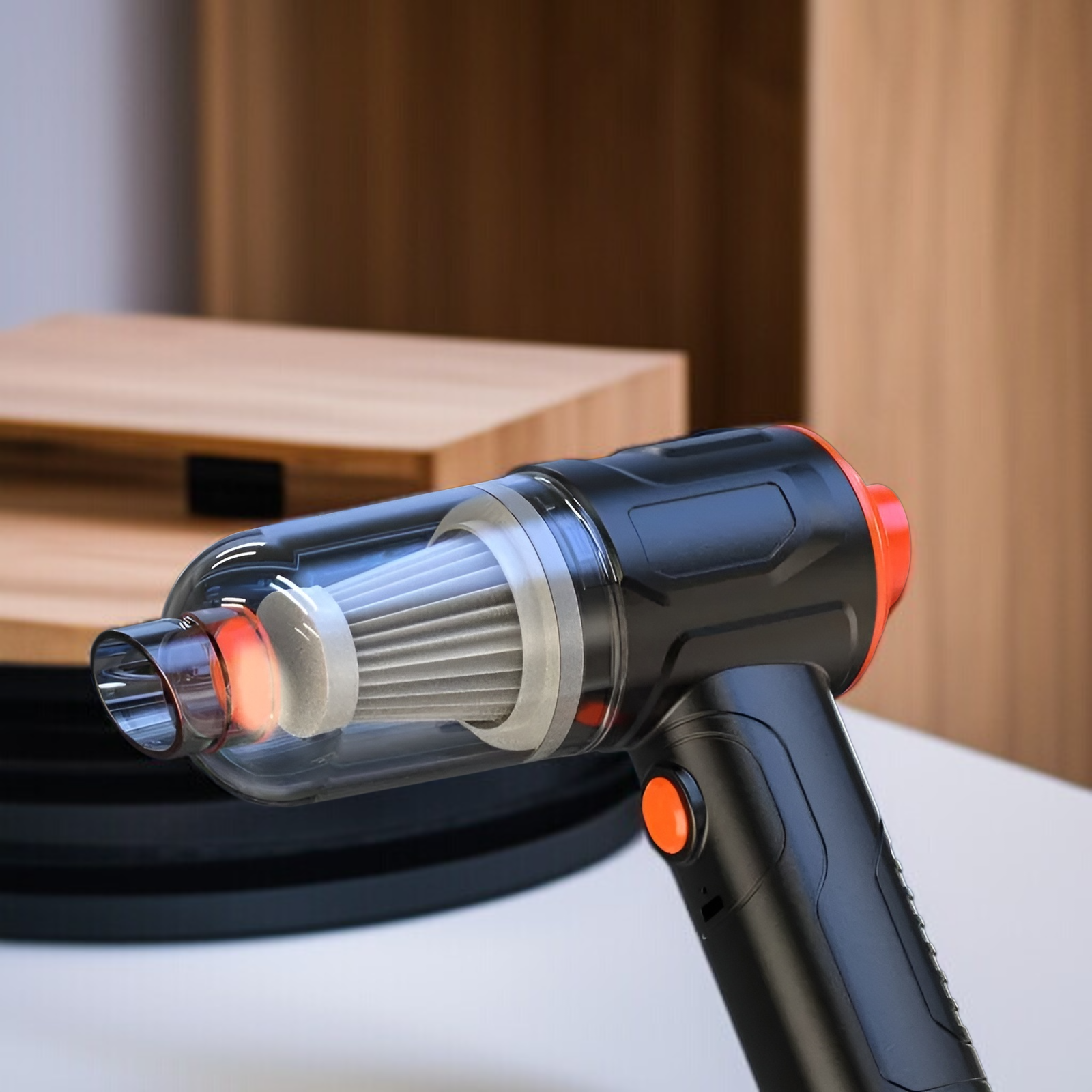 ● 브러쉬리스 모터 탑재로 강력한 흡입력과 긴 수명을 자랑하며, 차량 내부 먼지와 이물질을 손쉽게 제거할 수 있습니다.